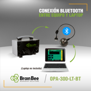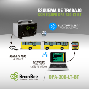 La conexión entre el OPA-300-LT-BT y la PC es mediante un kit bluetooth (incluido) con un alcance efectivo de 100 metros, con esta ventaja un solo operador puede hacer las pruebas de opacidad fácilmente. Por esta razón se utiliza incluso en centros de revisión oficial .